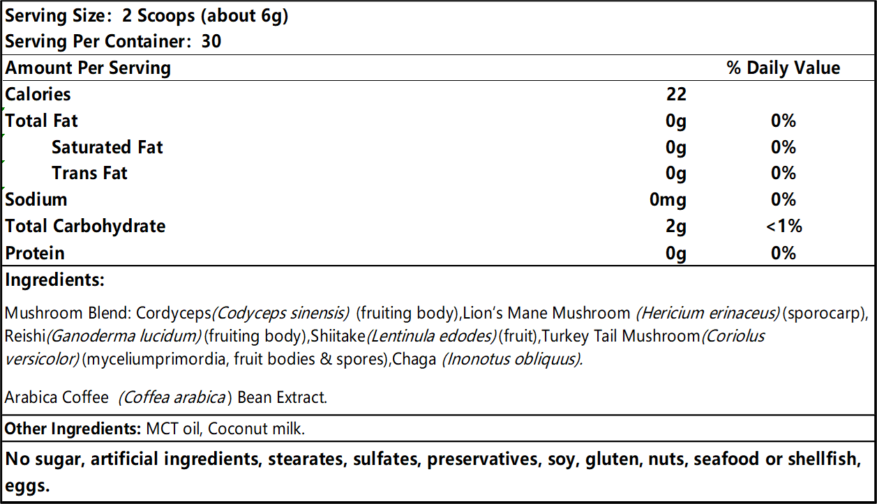 Seleccionamos las mejores materias primas de polvo de hongos y café, agregamos aceite MCT de alta calidad y leche de coco para mezclar el sabor y, después de cientos de ajustes, finalmente logramos un sabor satisfactorio.