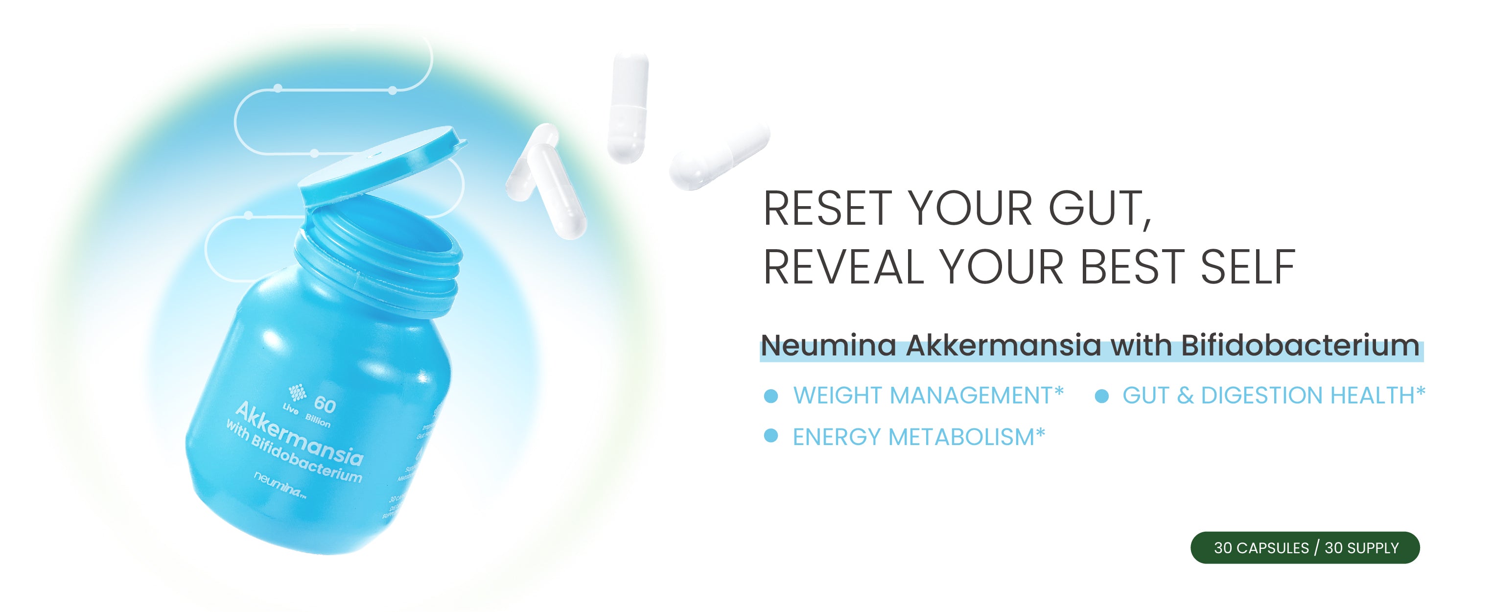 AKK restores your gut barrier and metabolic signaling. BLa 80 and the dual prebiotic blend build the microbial environment AKK needs to colonize. EGCG from green tea actively promotes the growth of both Akkermansia and Bifidobacterium.