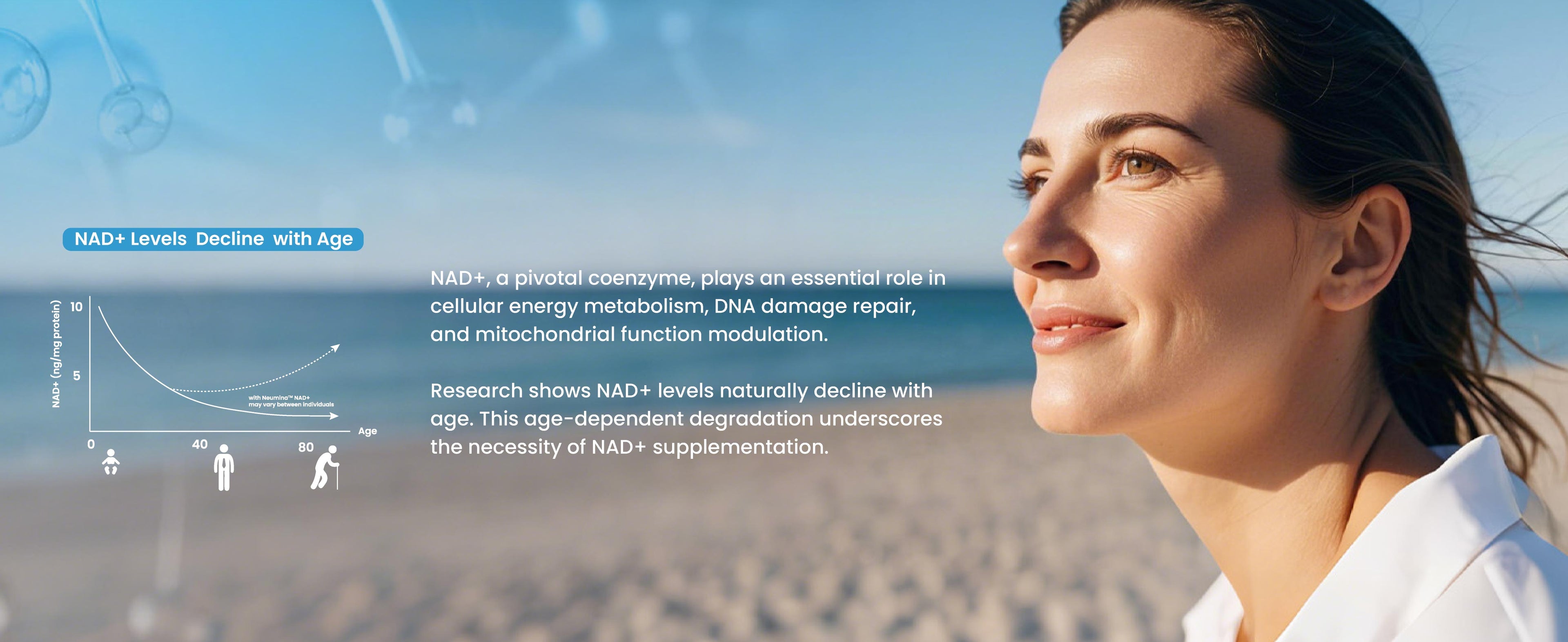 NAD (Nicotinamide Adenine Dinucleotide), known in Chinese as nicotinamide adenine dinucleotide, is one of the coenzymes widely present in cells. NAD⁺ refers to its oxidized form. NMN (nicotinamide mononucleotide) and NR (nicotinamide nucleoside) are both precursor substances for the synthesis of NAD+.