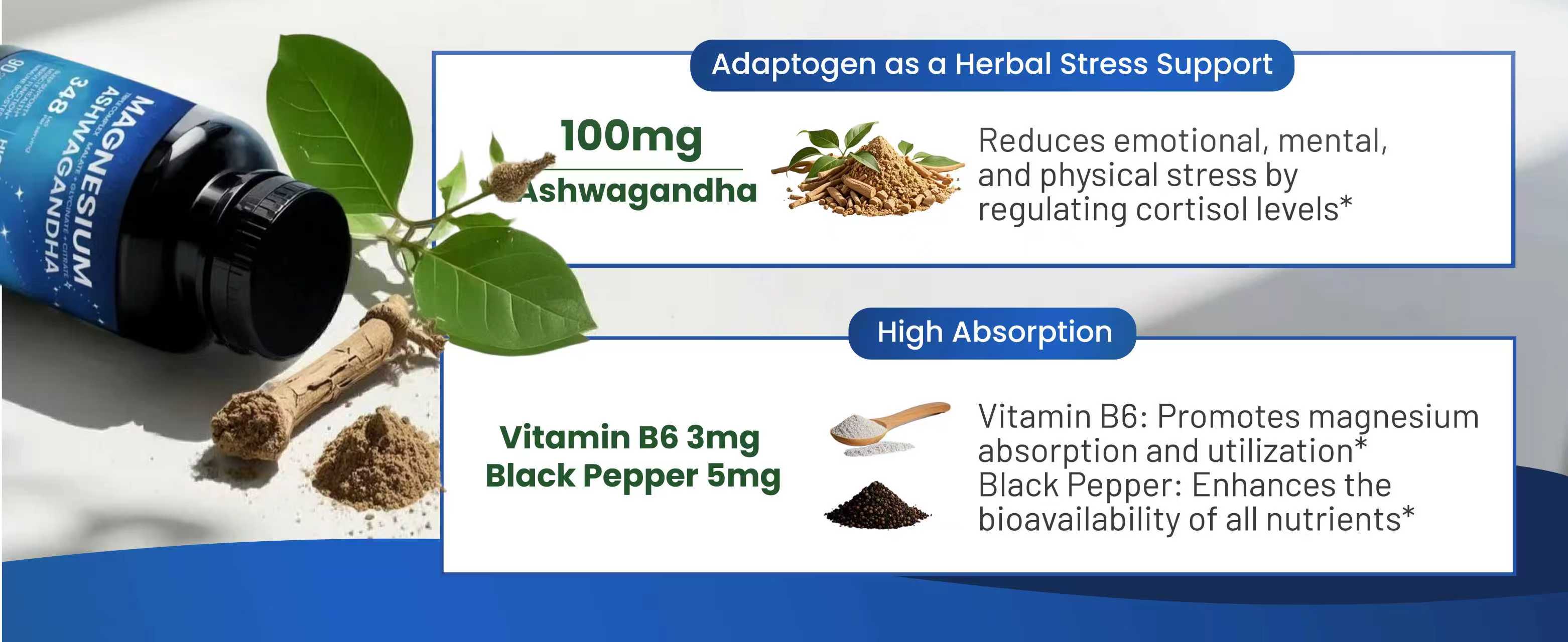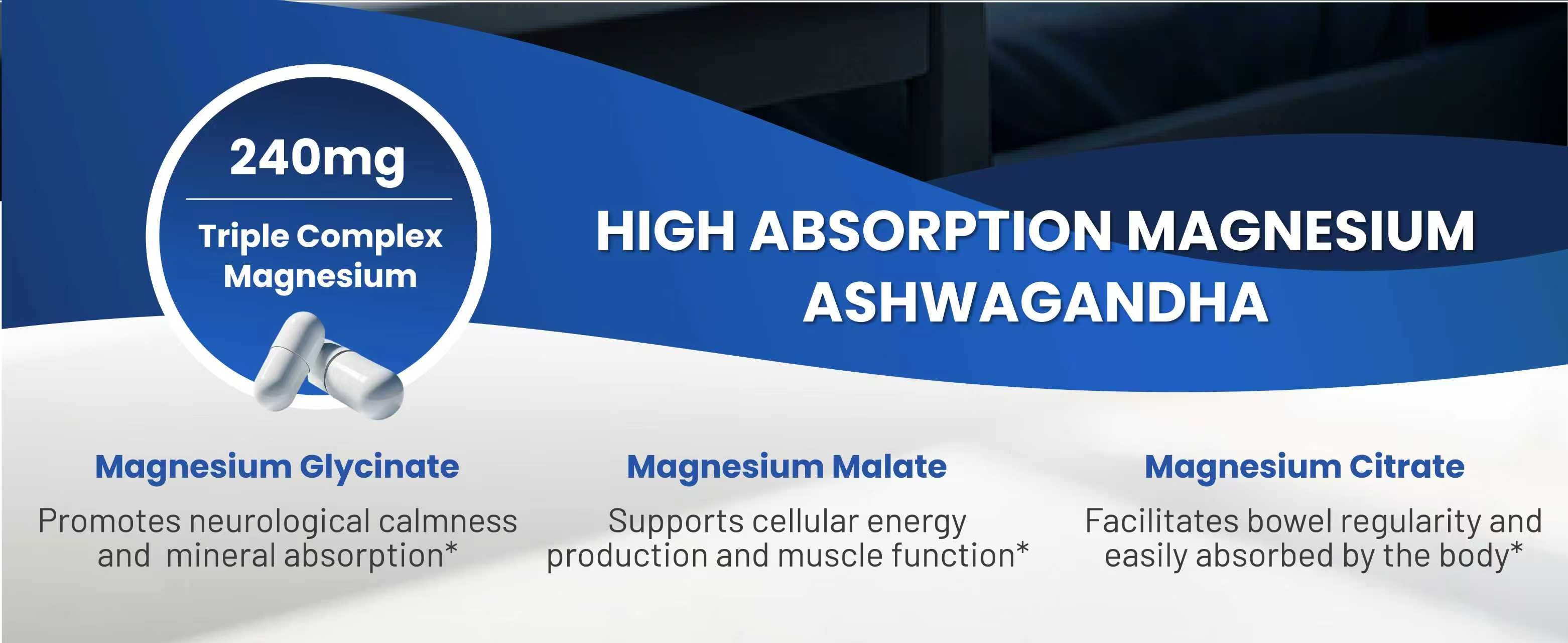 Triple complex magnesium(malate + glycinate + citrate) +ashwagandha;